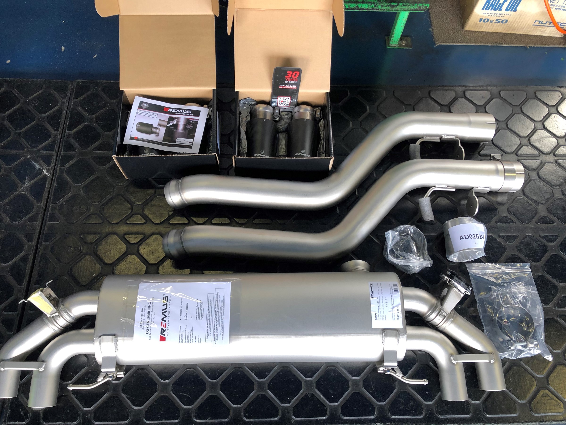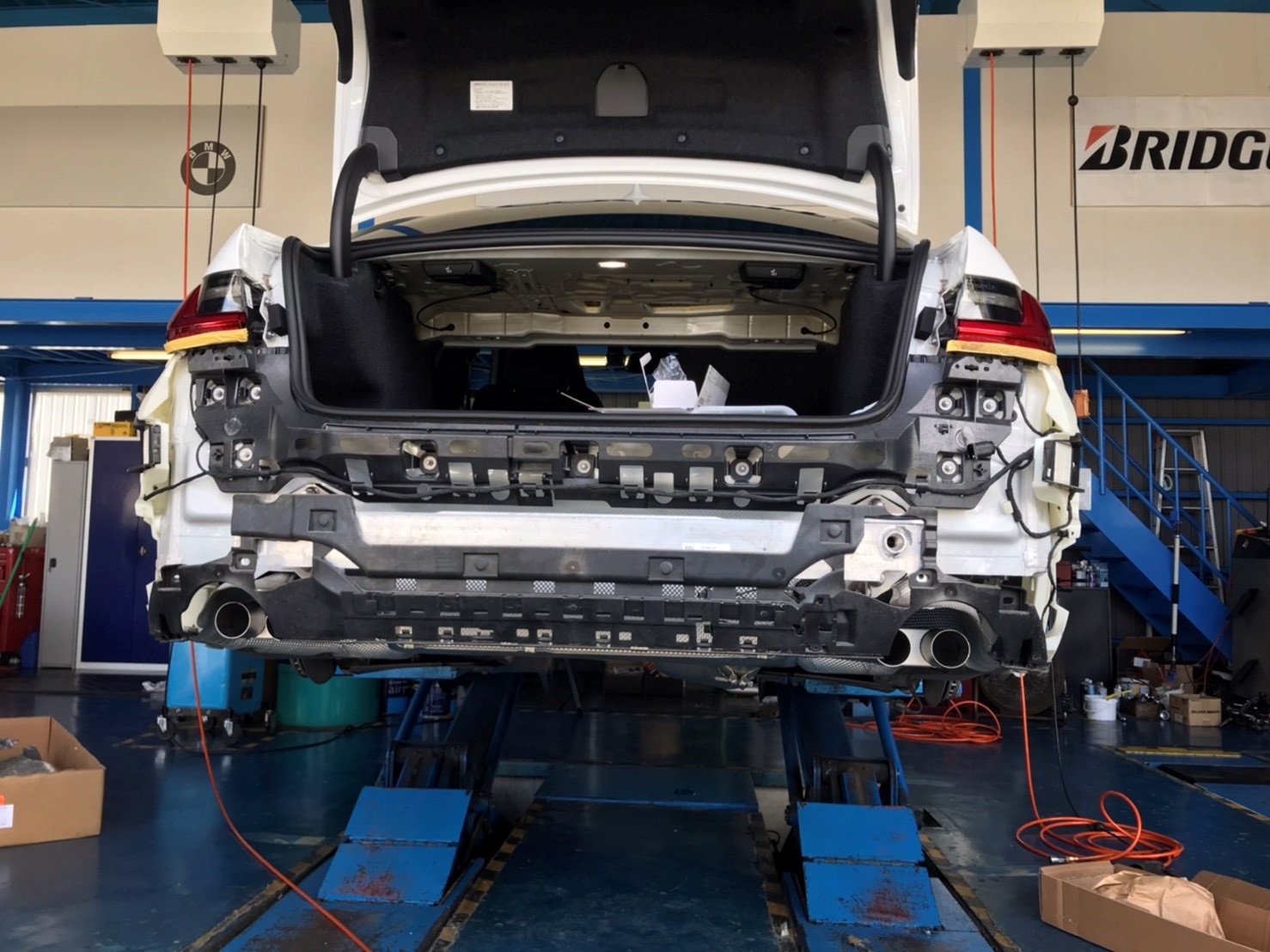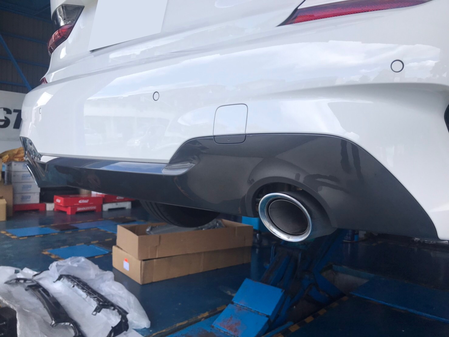 その【REMUS】さんから発売されたばかりの【BMW 330i Mスポーツ G20】用の4本出しマフラーの装着です!