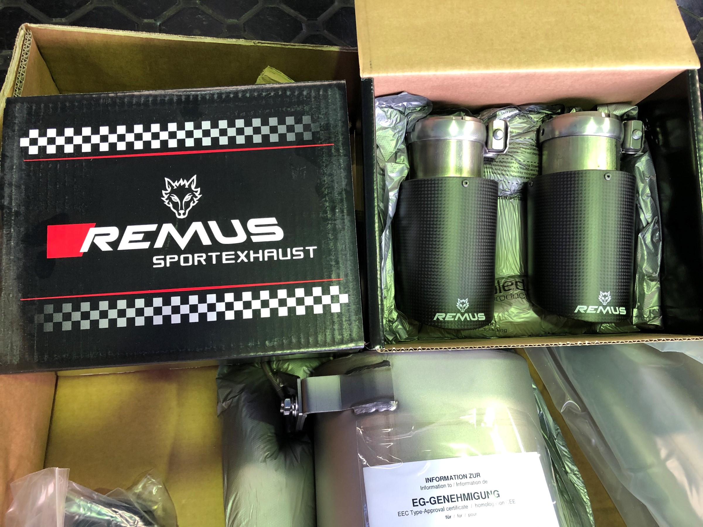純正だと見栄えが・・・と言う事で、おそらく【REMUS】さんから発売されたばかりの商品をとりつけていきます!!
