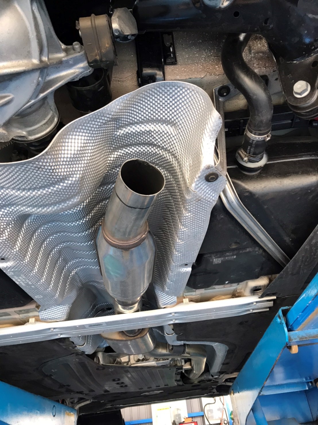 切ったパイプのところに変換パイプを取り付けて、リヤのタイコ部分をドッキング!