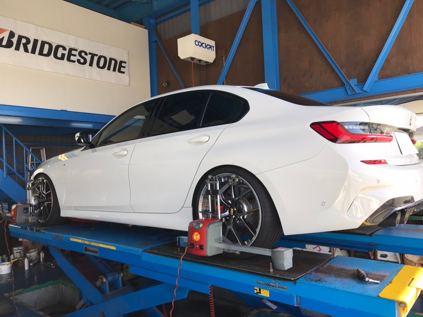 マフラー交換後にリヤの車高を少し調整しましたので、アライメントもしっかりと調整します!