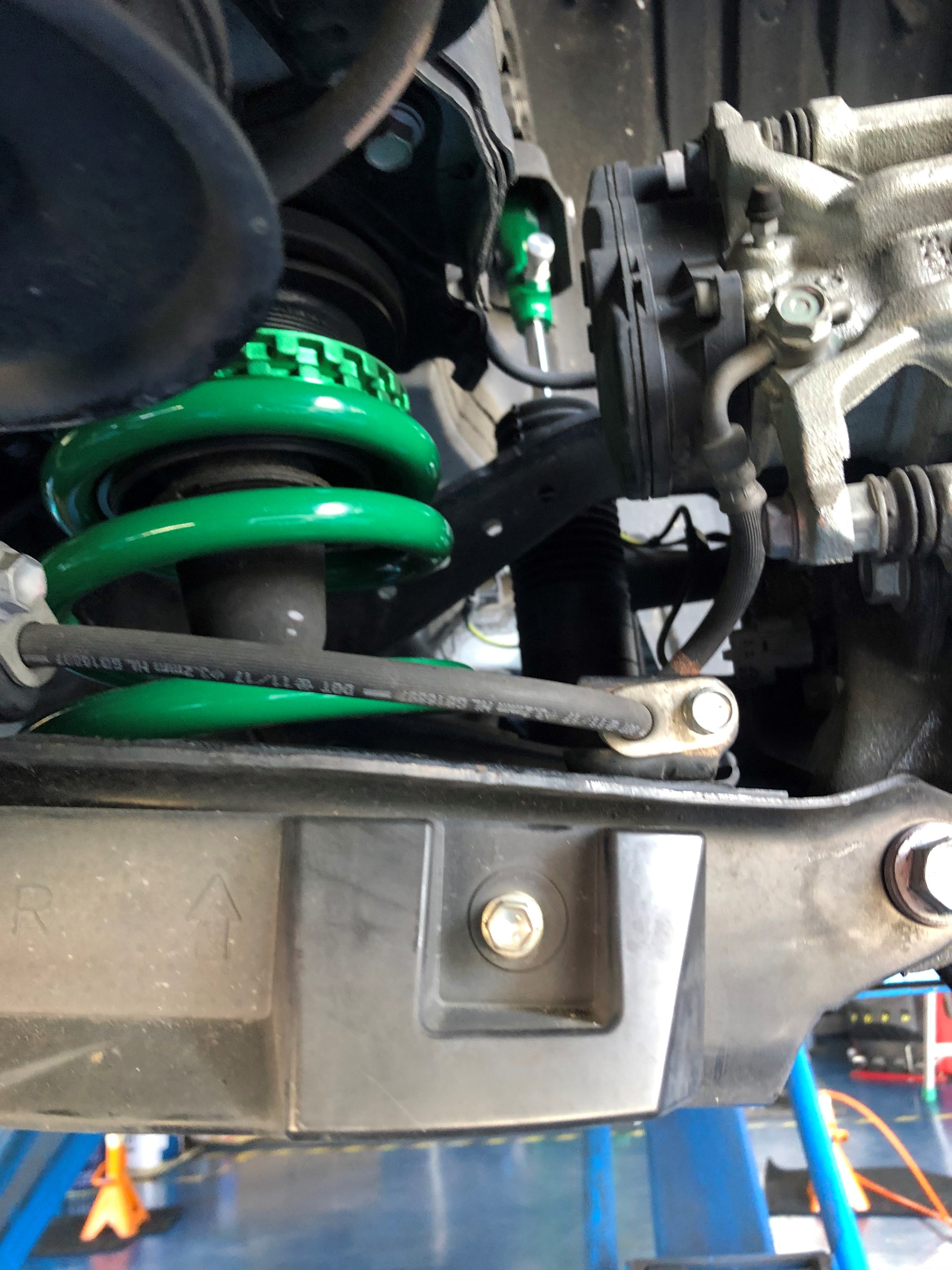 車高調取り付けから作業開始です。