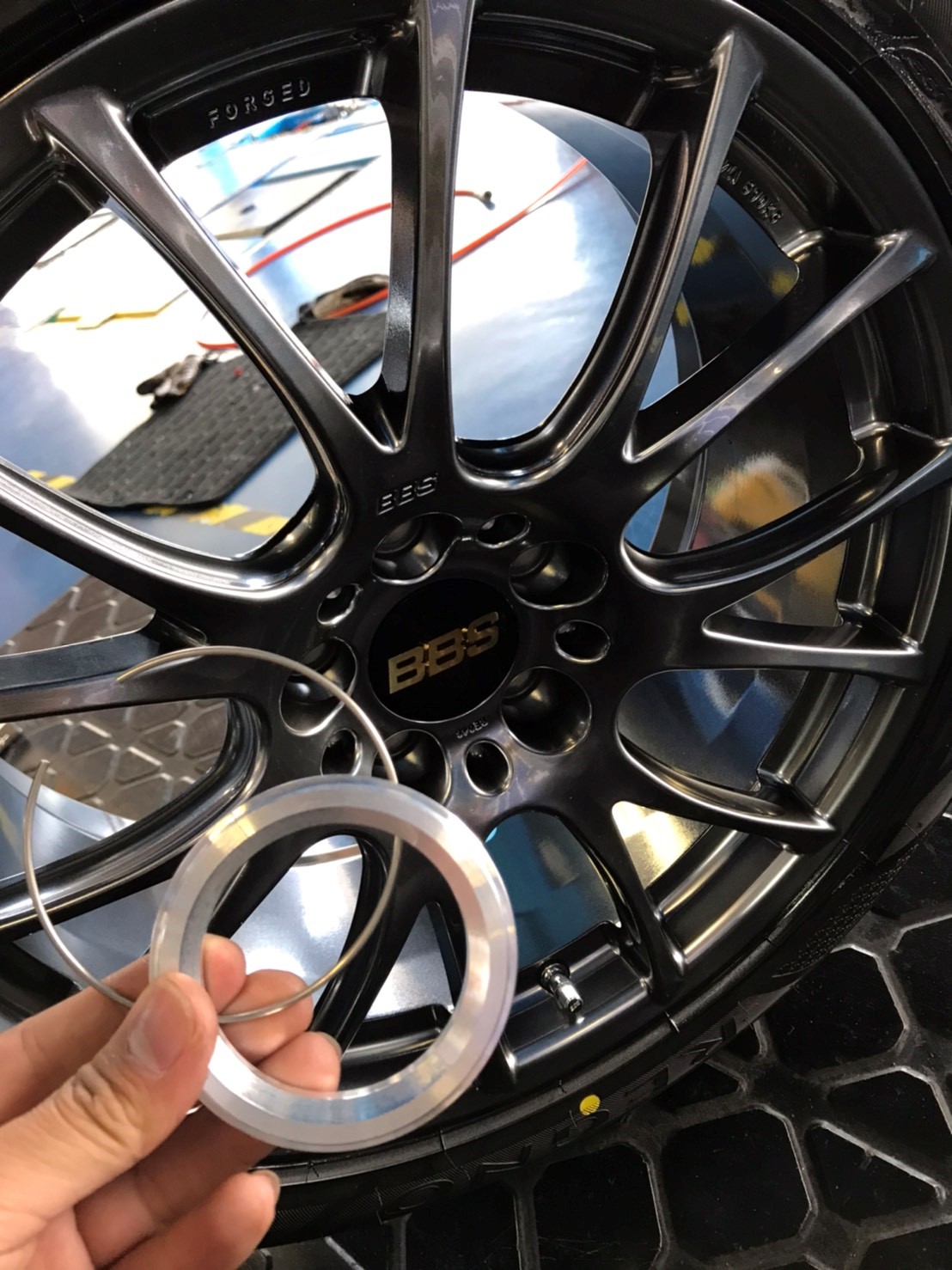 そして【BBS】のホイールには専用のハブリングも一緒についてくるので、ハブリングも装着します。