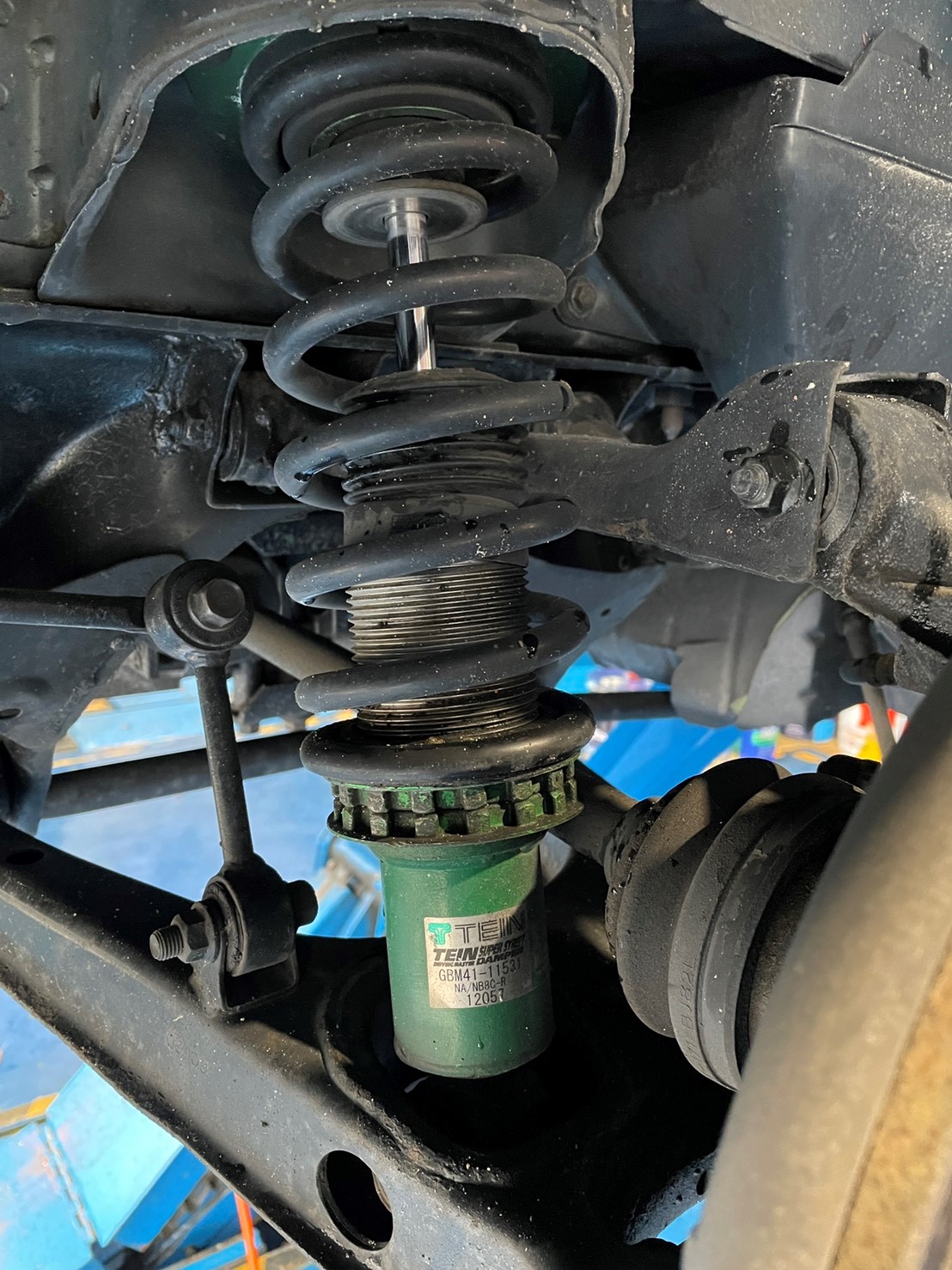 もともと『TEIN』車高調がついていますが、やはり年数が経ちヘタってきているようで、『TEIN SUPER STREET DAMPER』から『TEIN FLEX Z』に交換します。