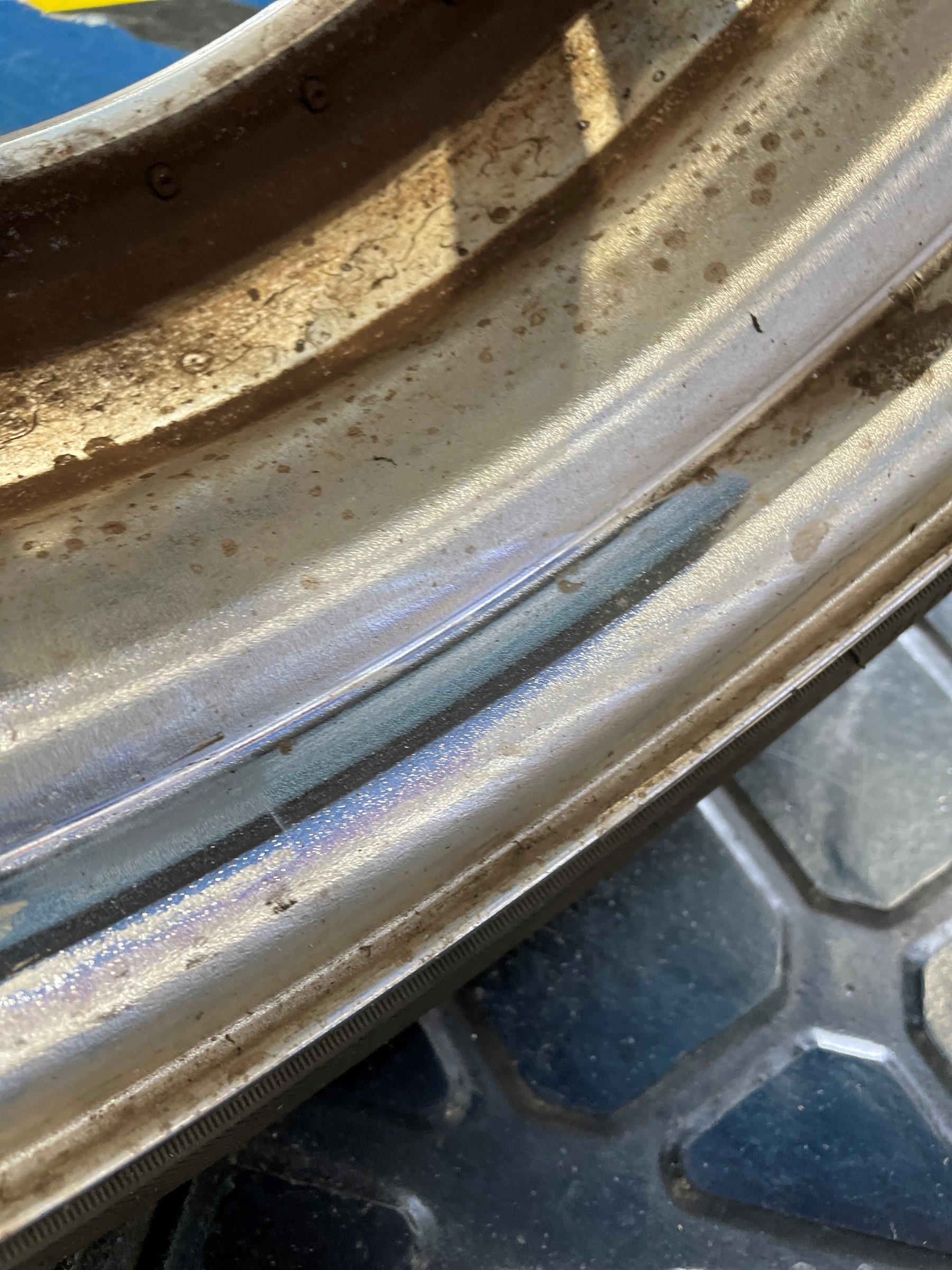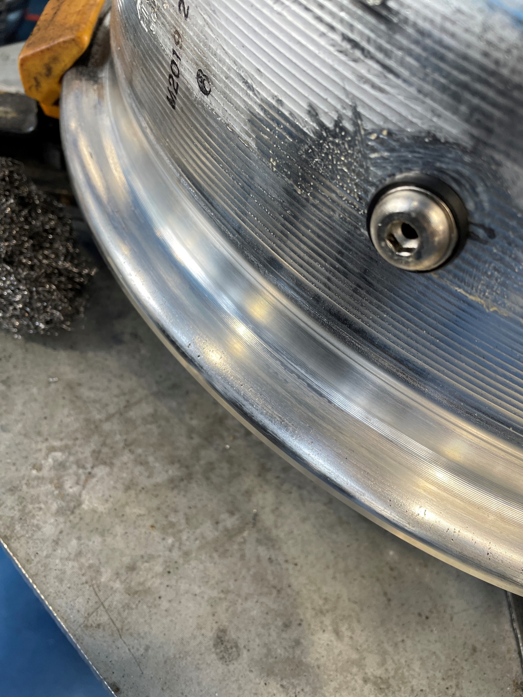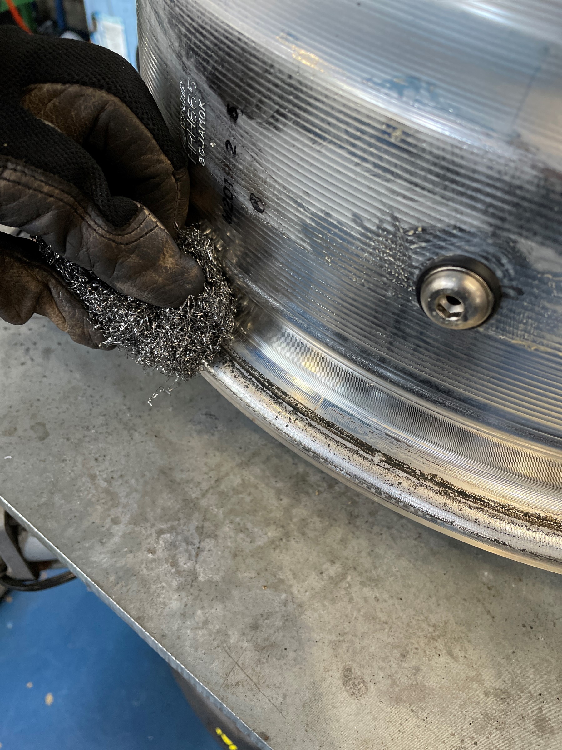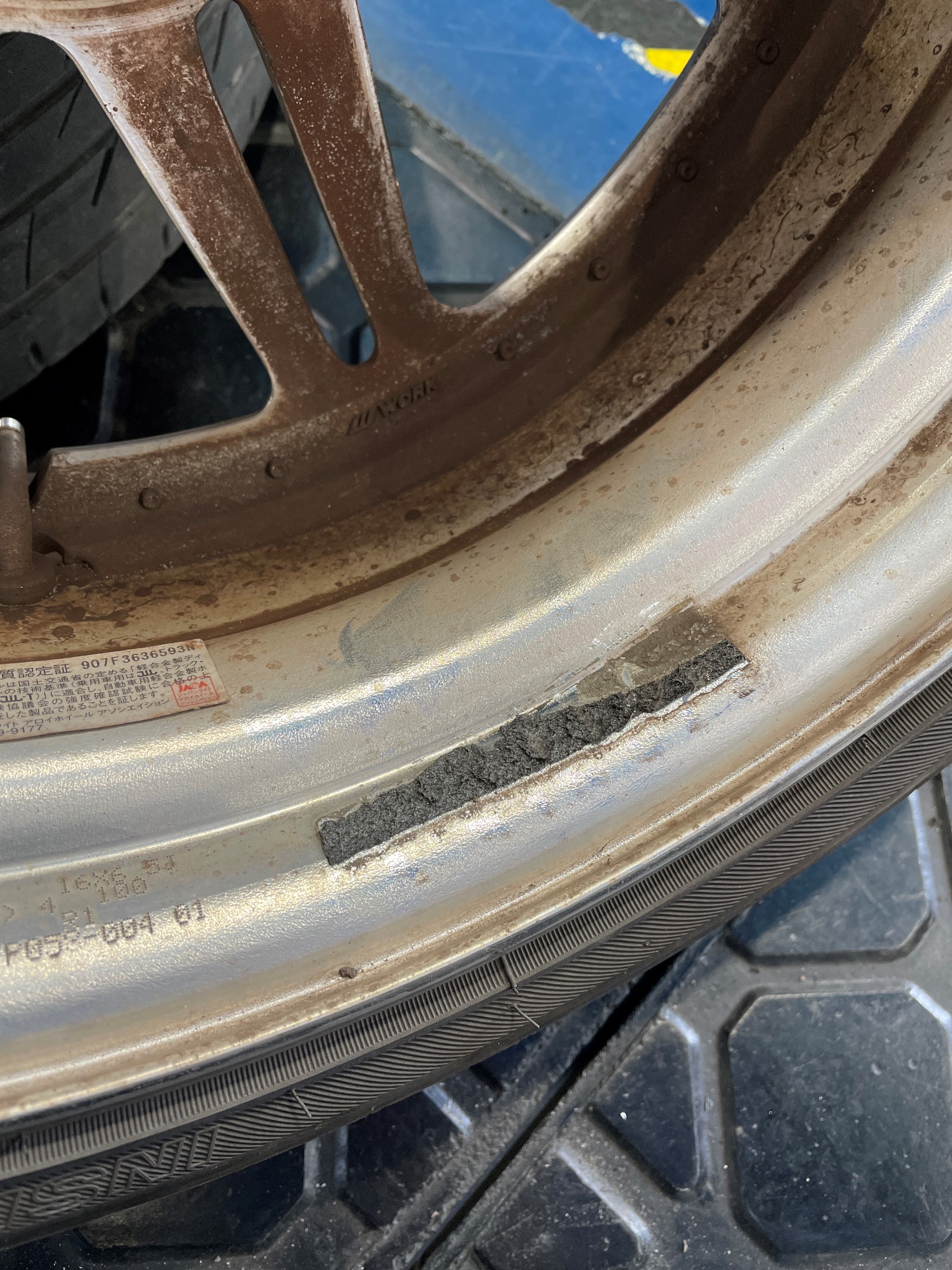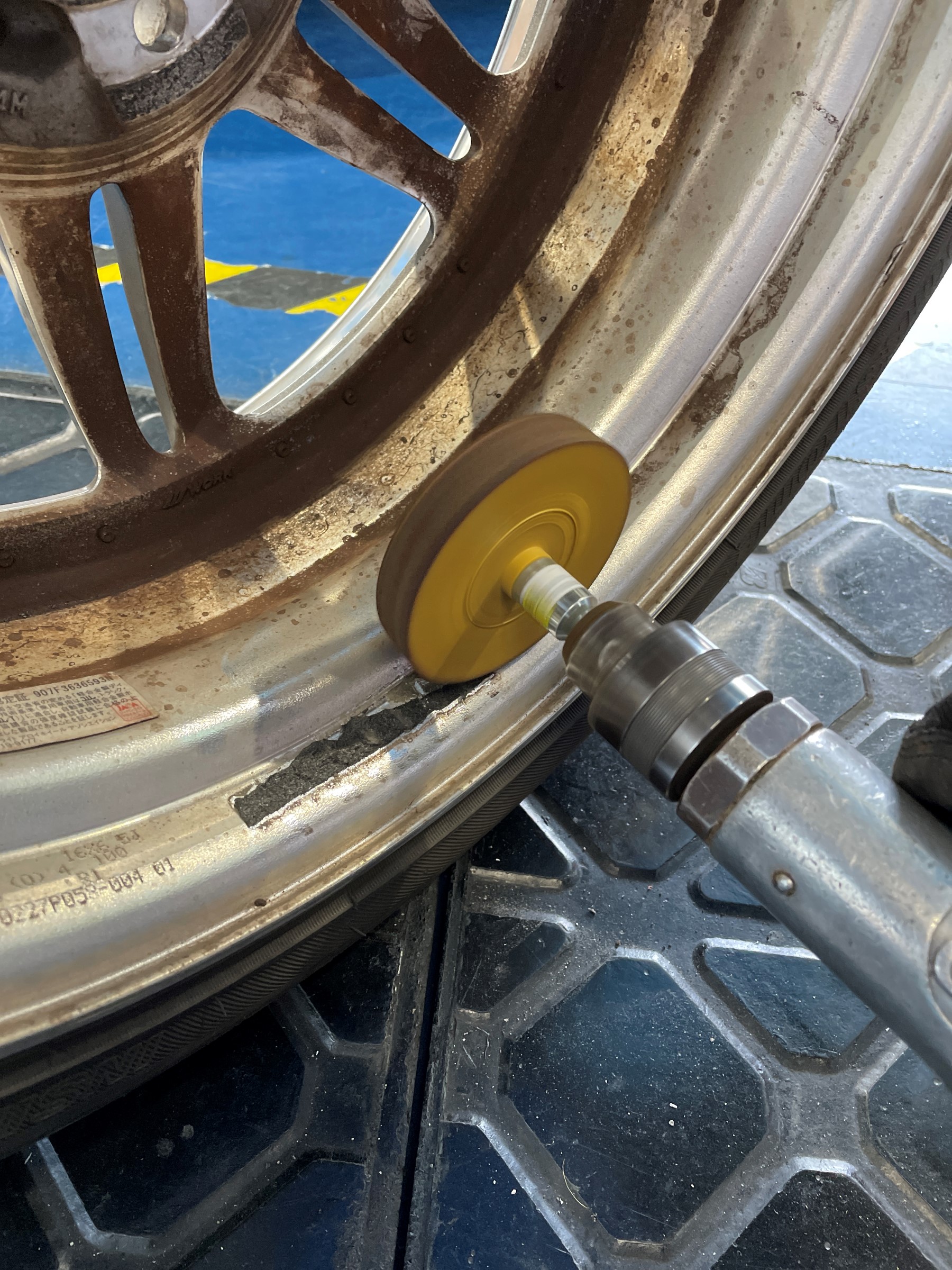 このままだと汚いですし、新しいバランスウェイトが張り付き難いので綺麗に清掃します。