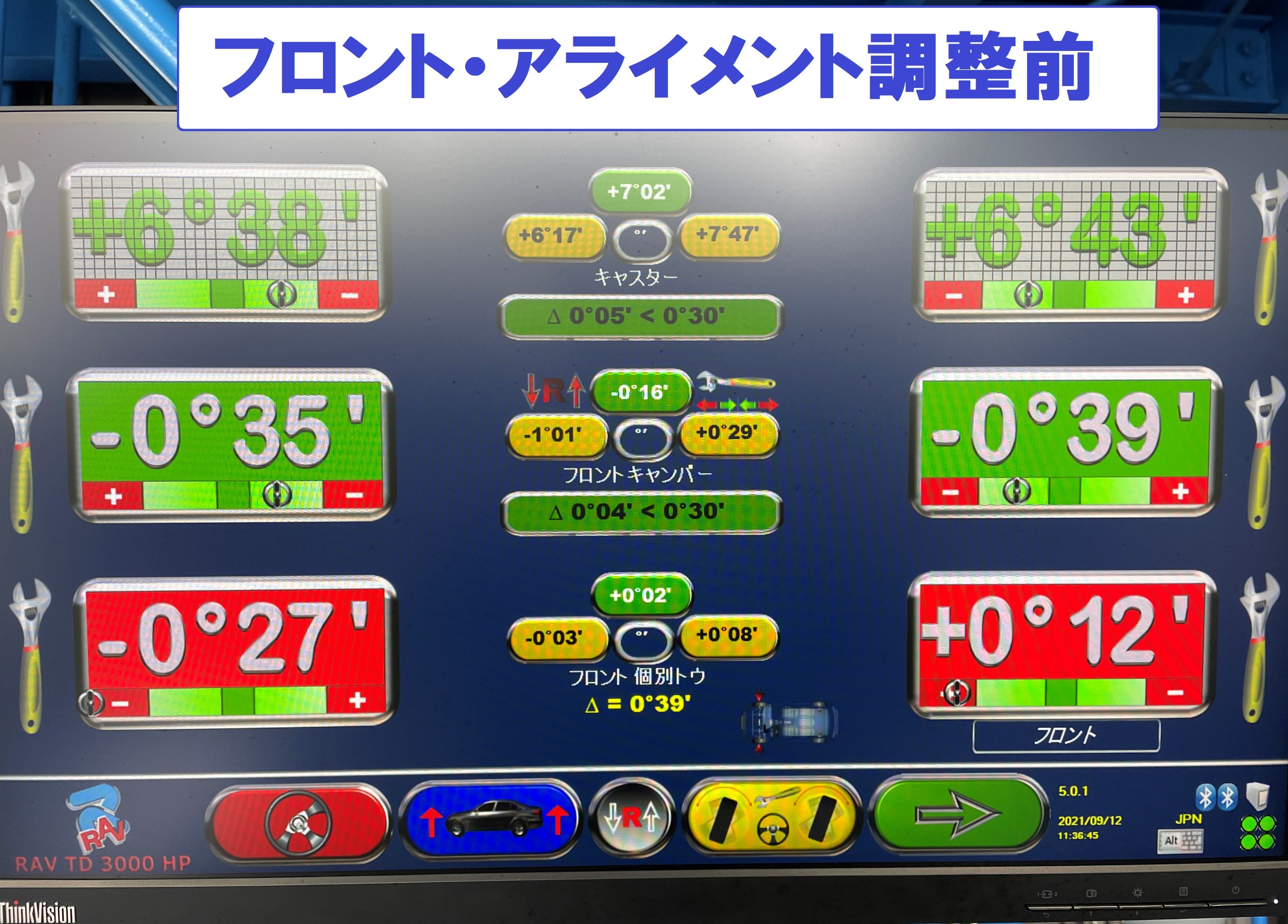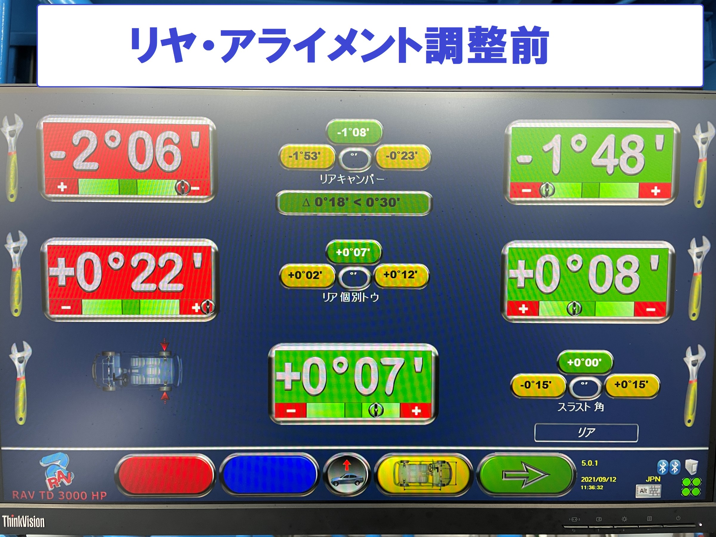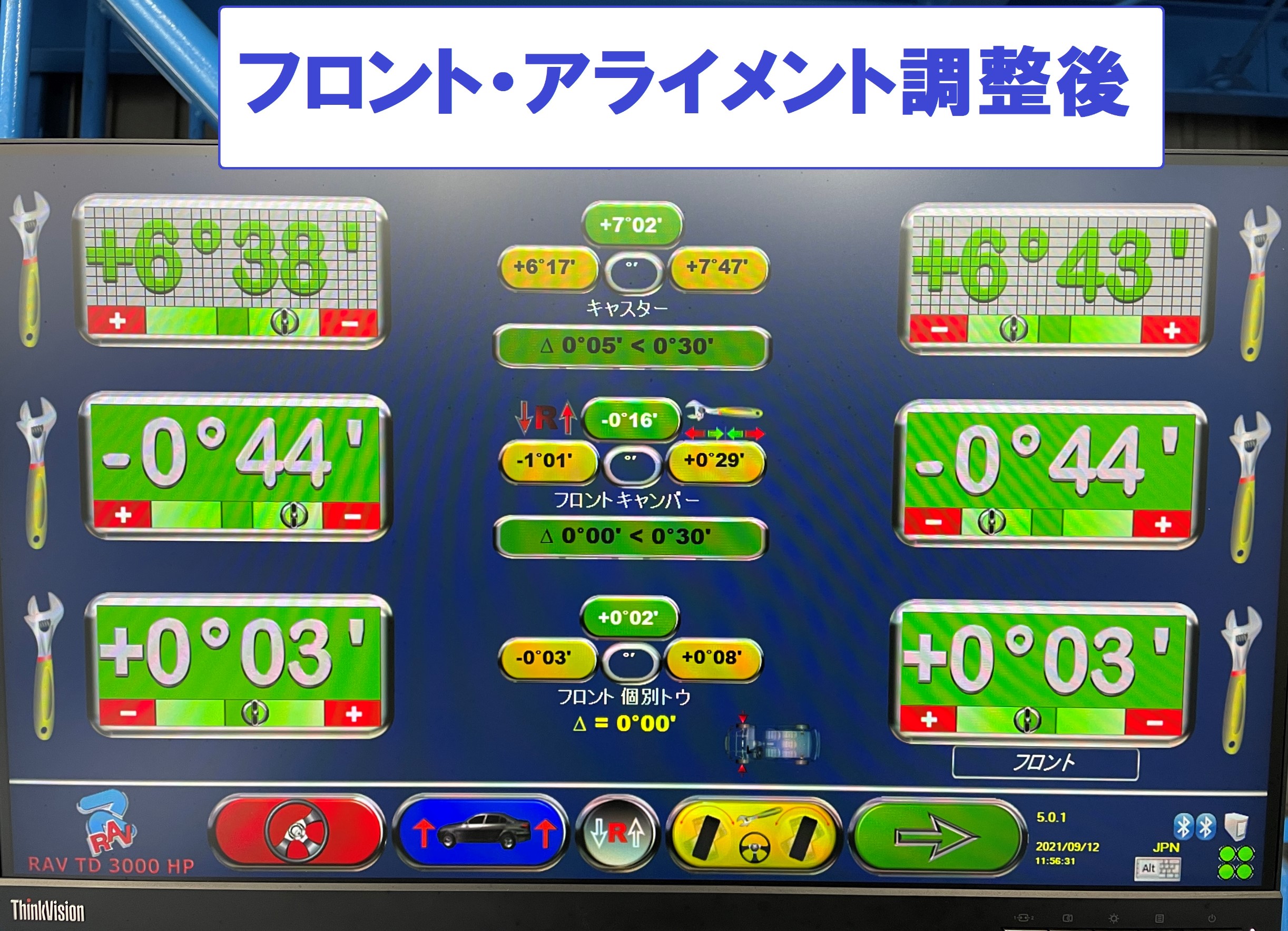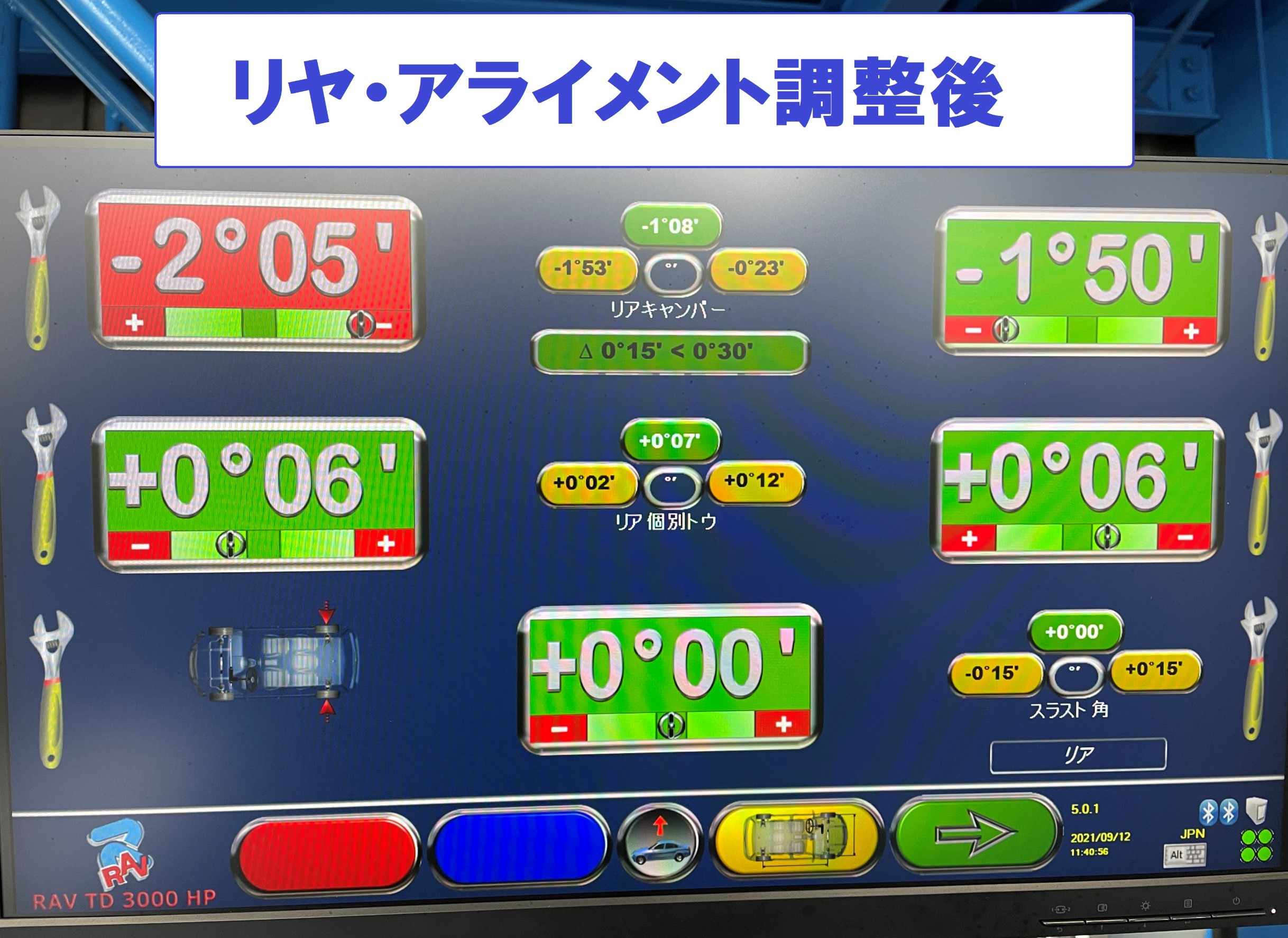 慣らし走行も完了したので本日はアライメント調整作業を施工します。