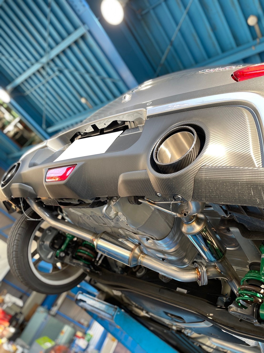 センターパイプからの交換で排気効率が良く、カーボンテールですのでリアビューがかなり引き締まるはずです。
