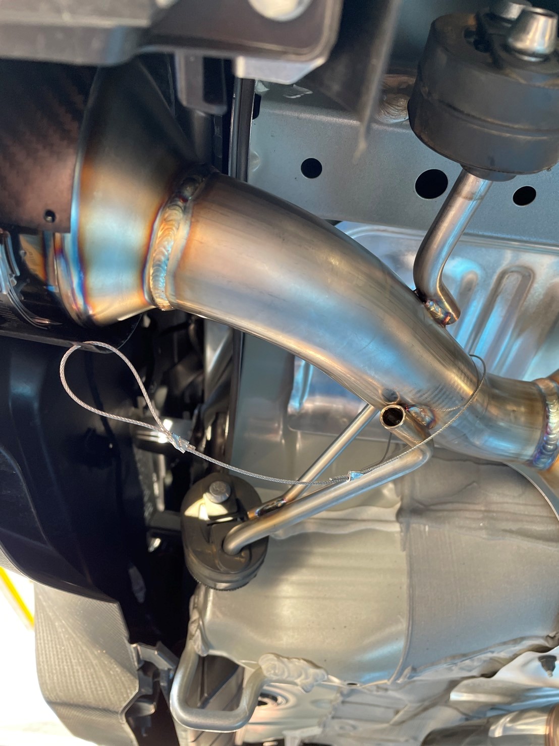 もしもの時のために、カーボンテール落下防止のワイヤーも取り付けます。