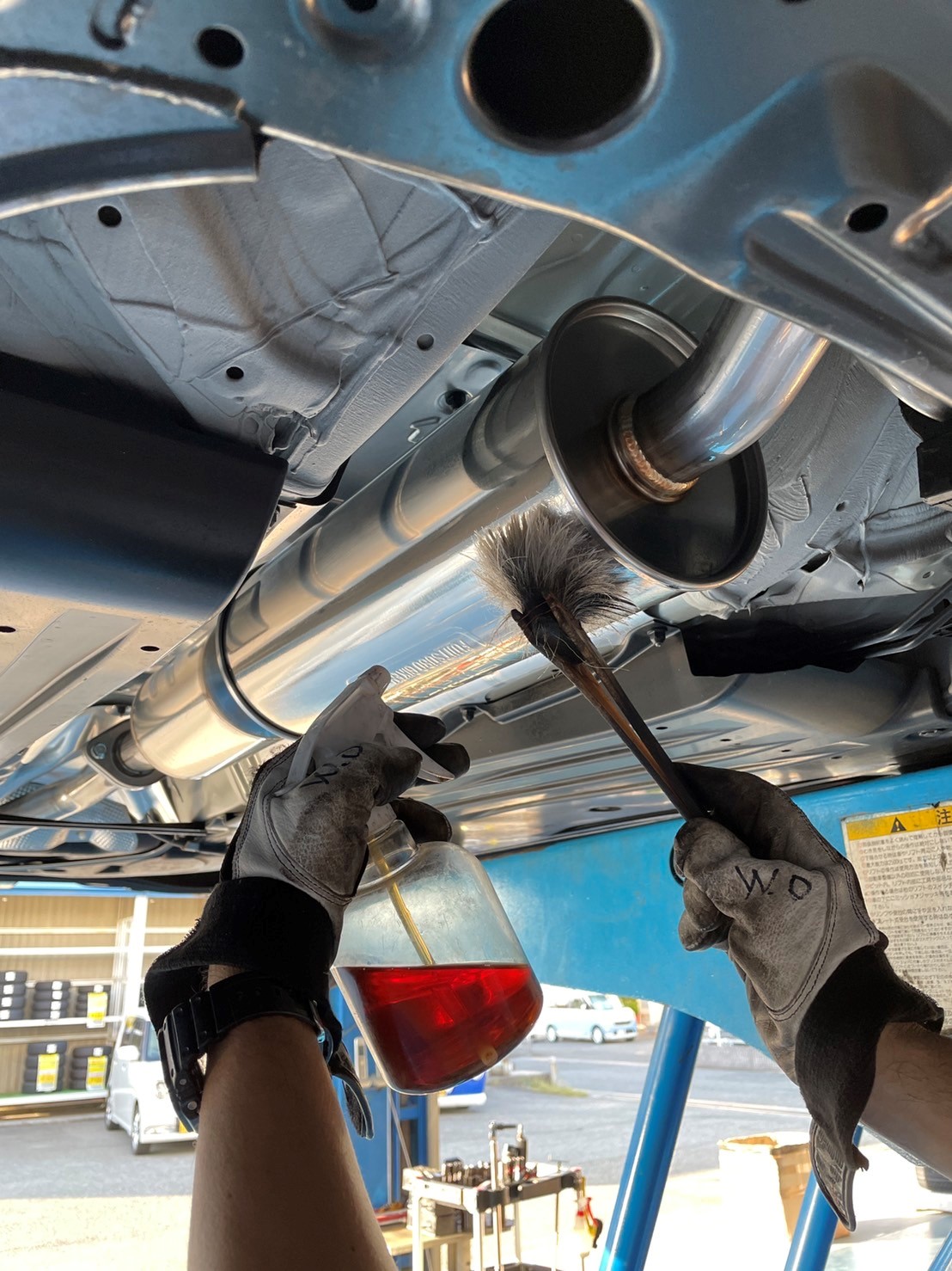新品のマフラーですので隅々まで防錆コーティングを施工します。