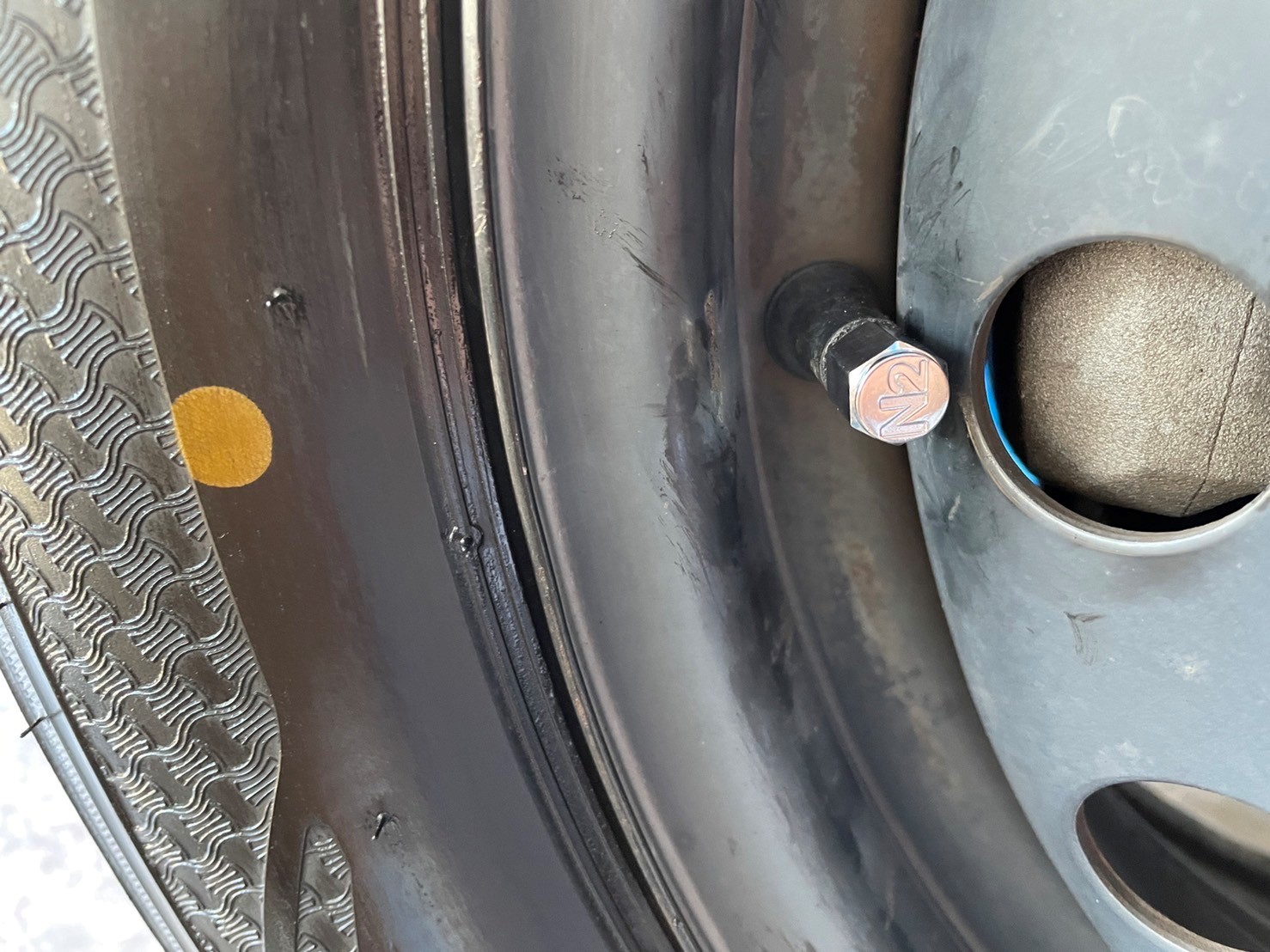 当店では窒素ガスの充てんもおススメしており、iQにも充填いたしました。窒素ガスを注入している証に窒素のマークのエアバルブを使用いたします。