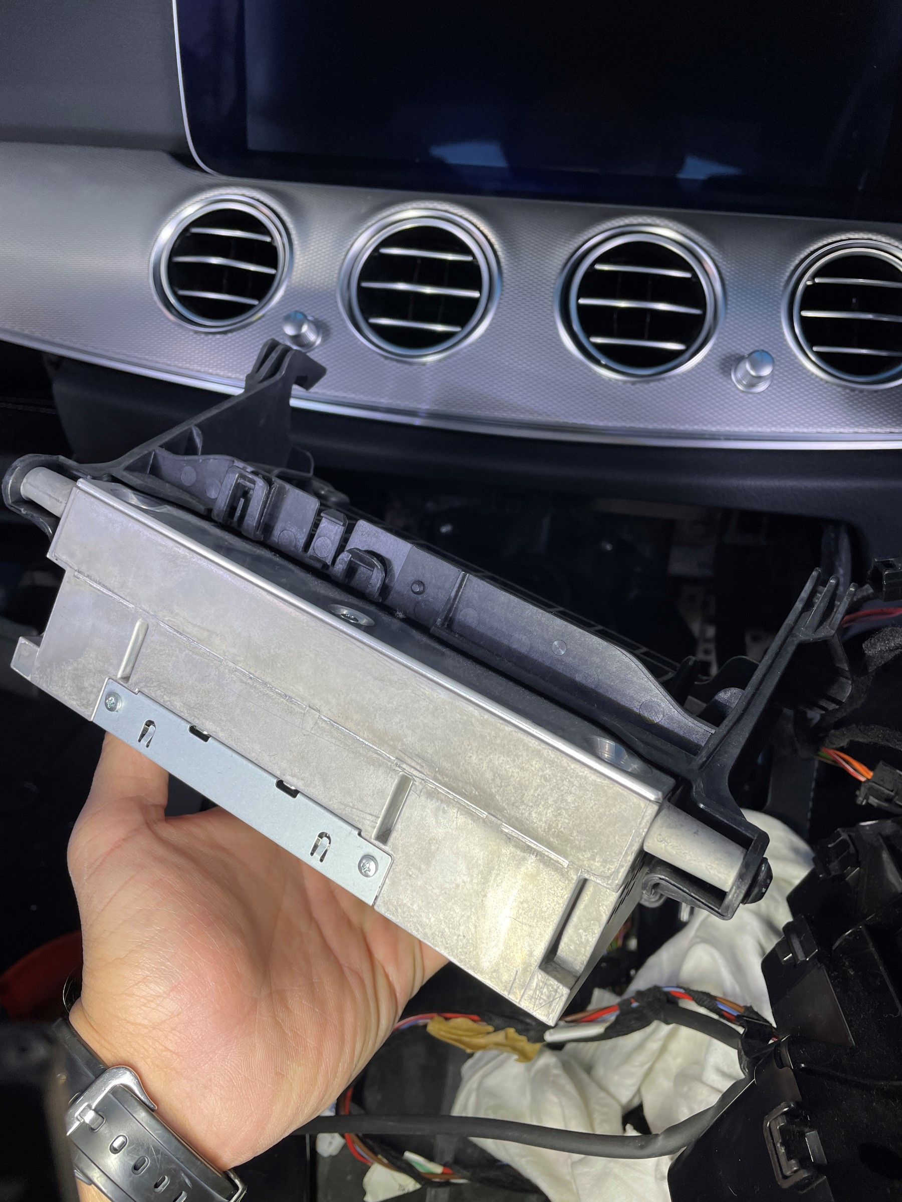 奥に格納されているCOMANDコントロールユニットが取り出せます。