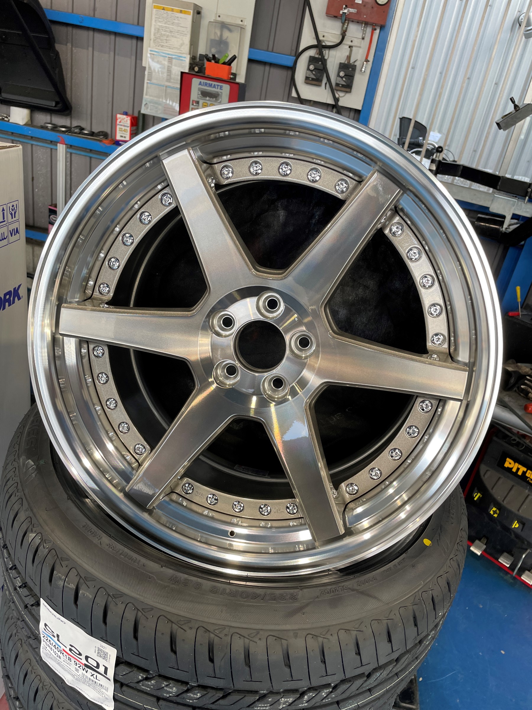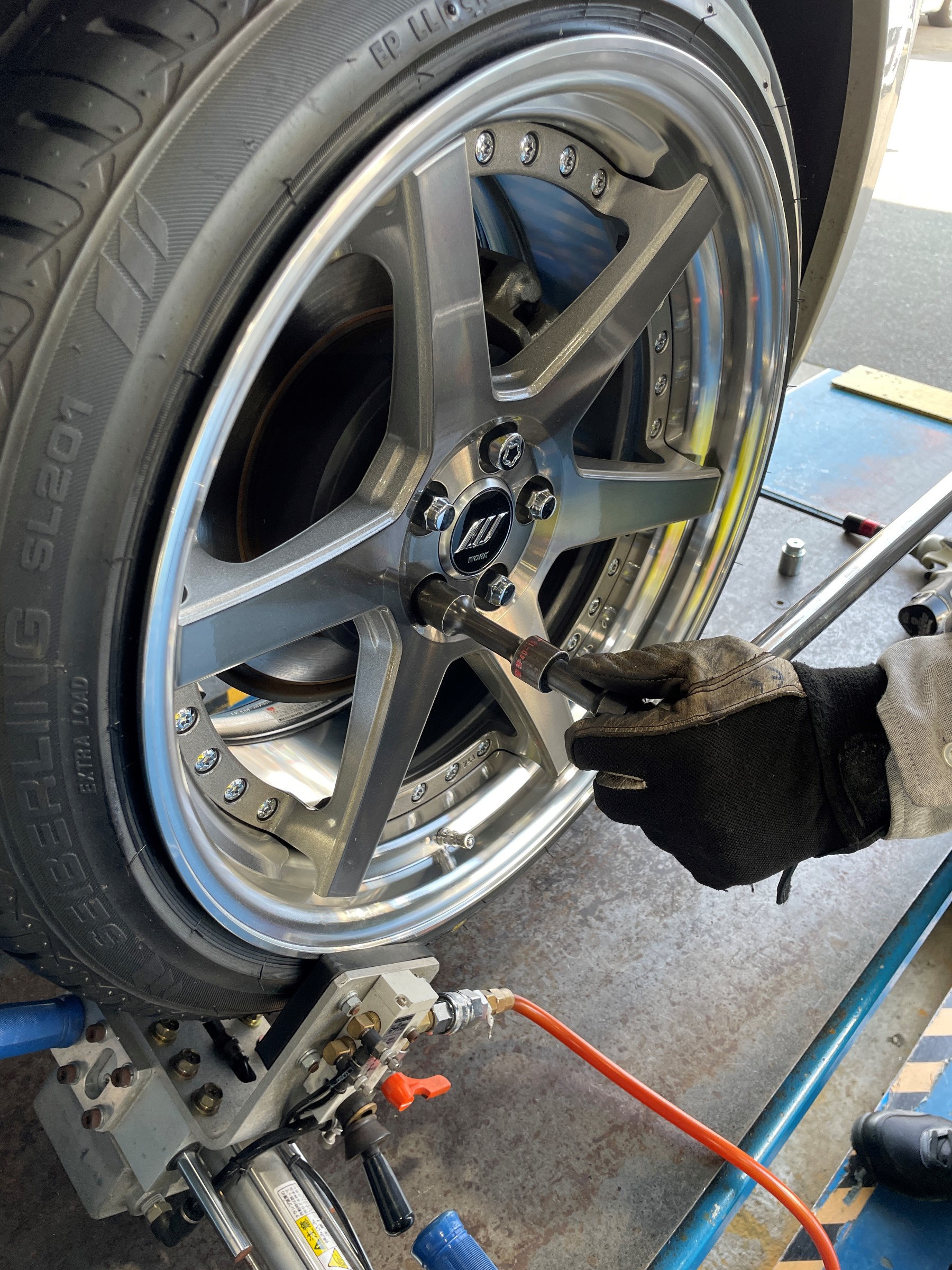 早速ホイールにタイヤを組み込みます。慎重に作業をすすめます。