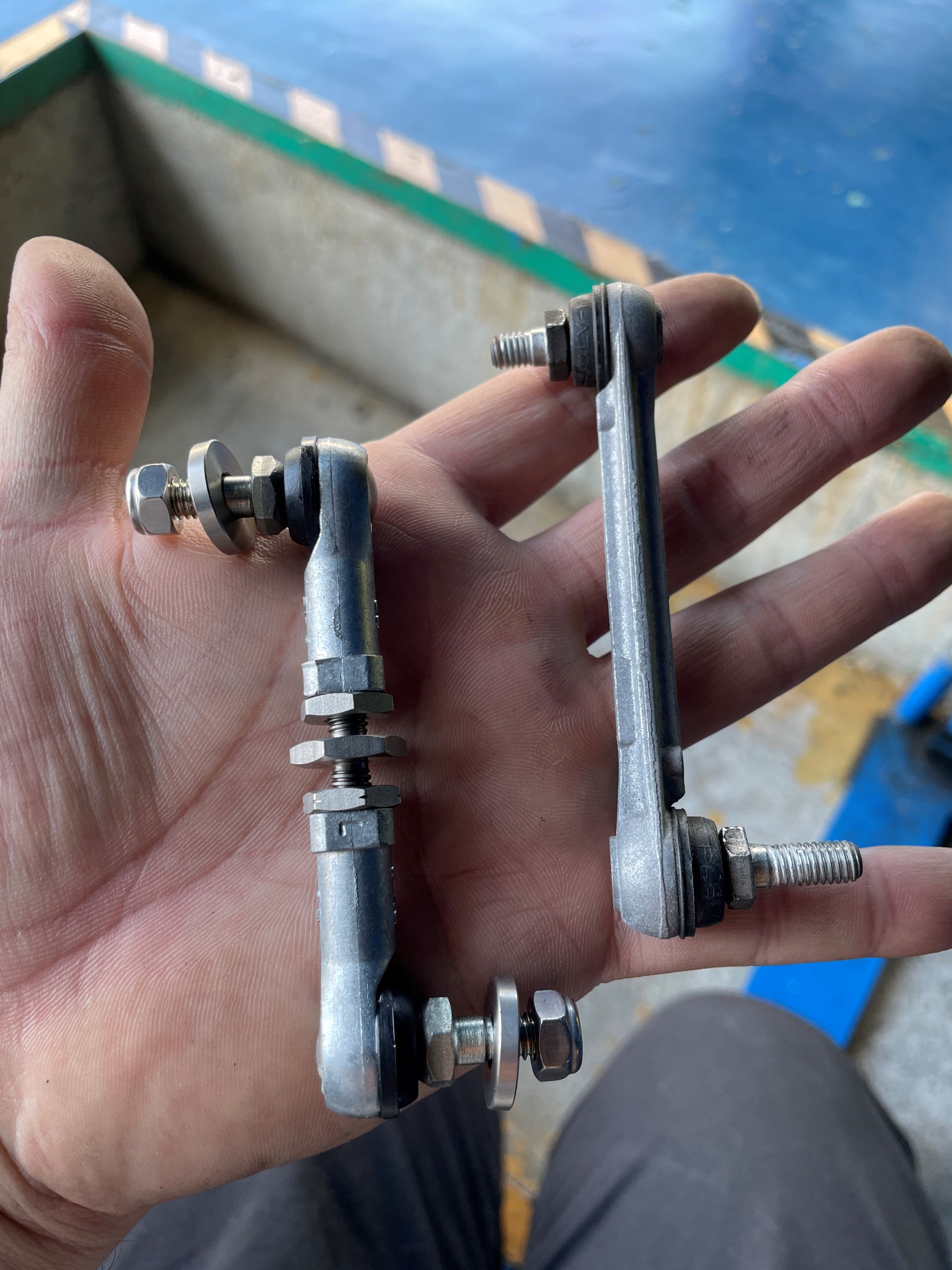 交換することにより、車高の変化に合わせてヘッドライトの光軸を調整出来る様になります。