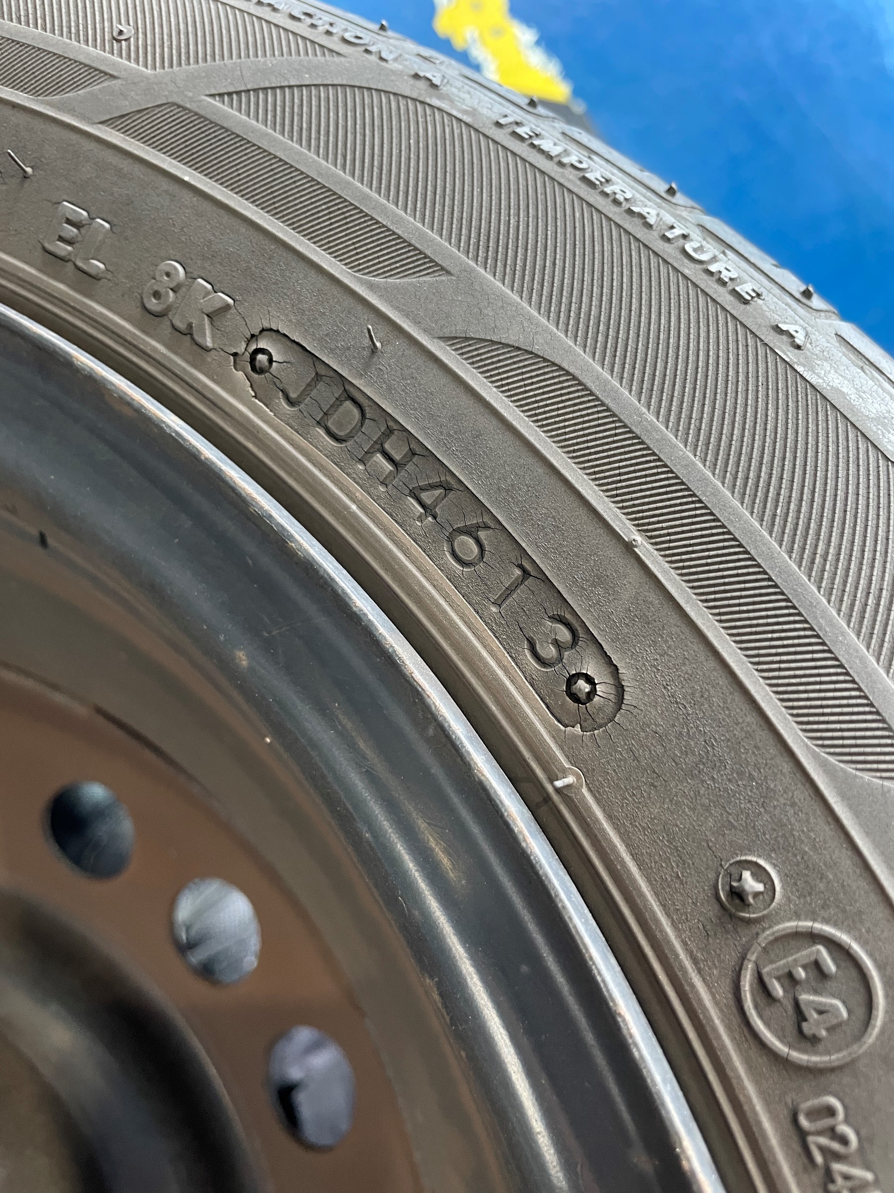 『4613』という数字があり、2013年の46週目に作られたタイヤであることがわかります。