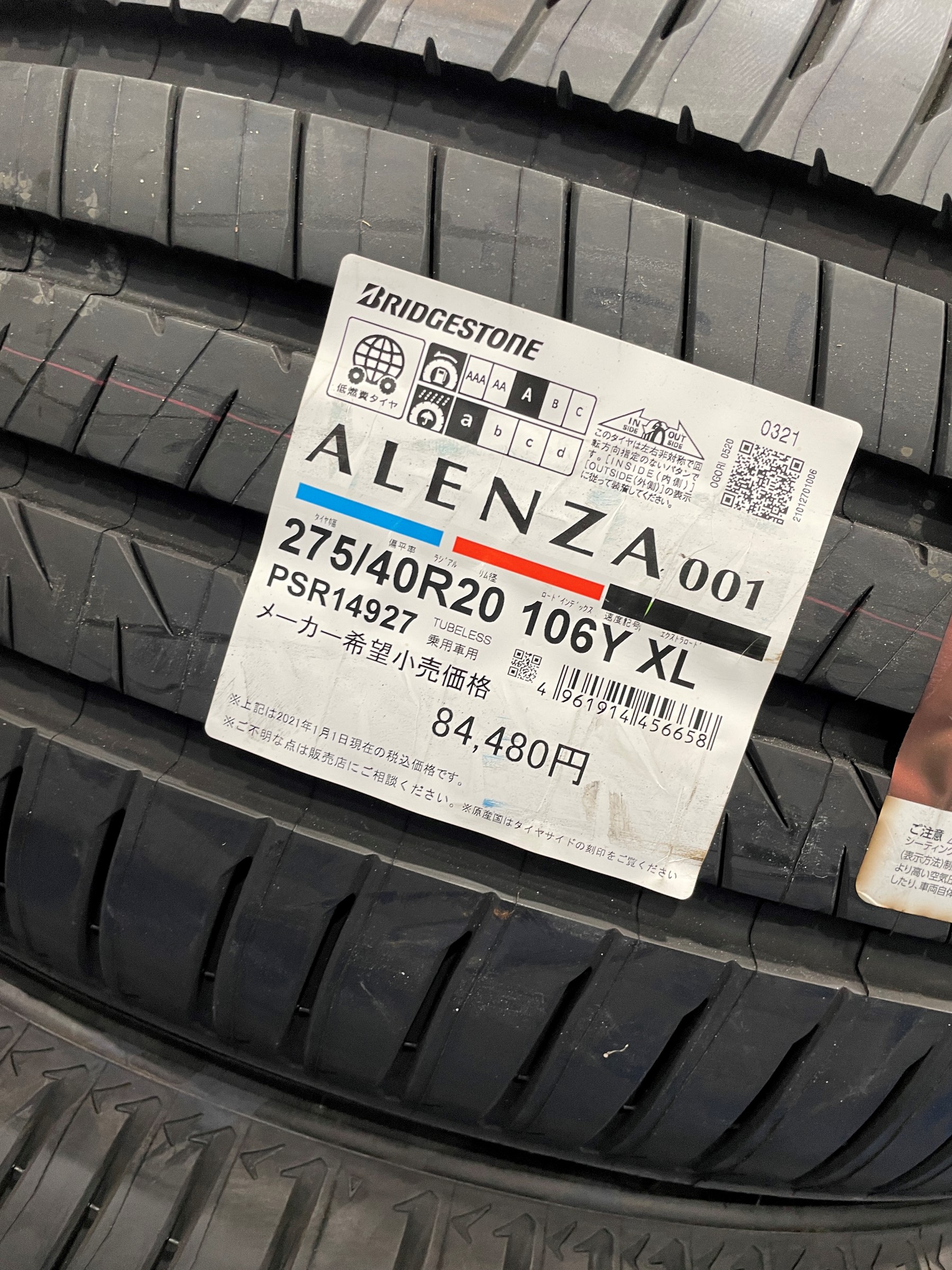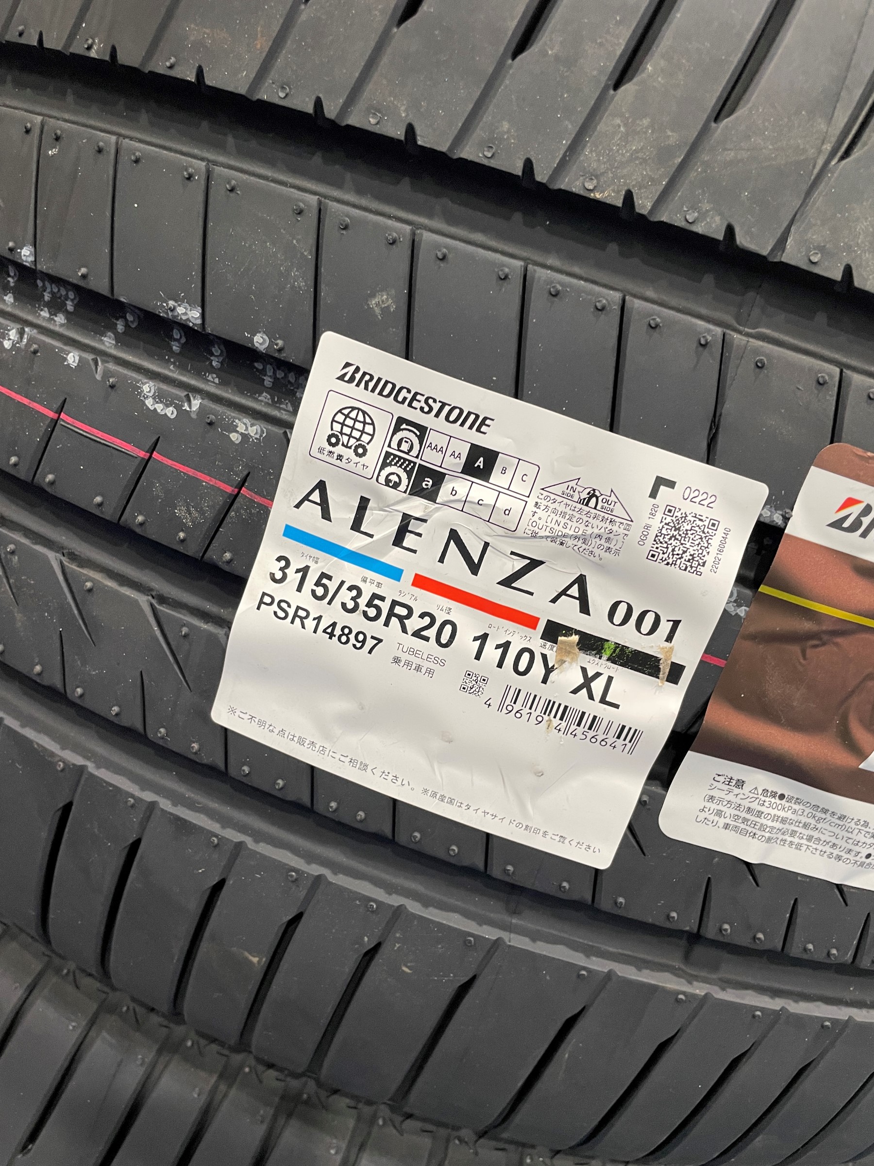 届いた瞬間・・・驚きました!!!そのタイヤは・・・・『ALENZA 001 315/35R20』です。