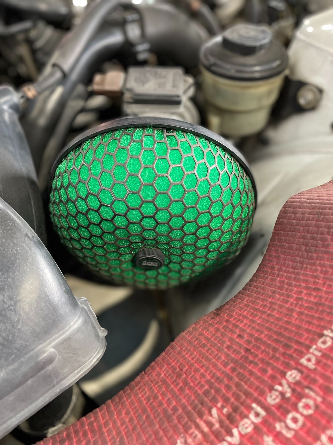 今回はエンジンルームのイメージチェンジも兼ねてカラーも変えましたが、やはり新しいフィルターだと気持ちいいですね。