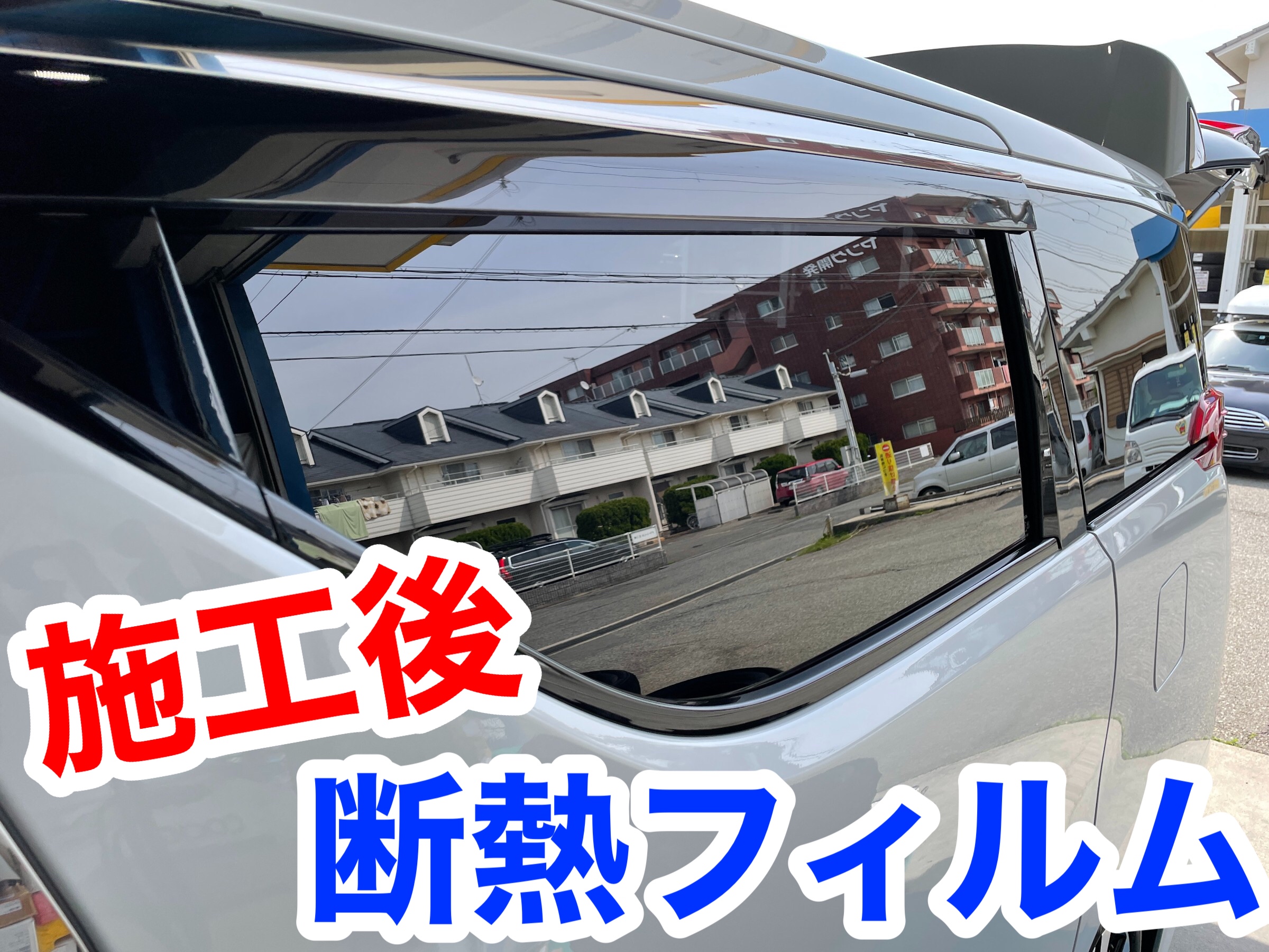 最近の車は薄いプライバシーガラスになっていますが、防犯や断熱効果を高めるためフィルムを施工します。フィルムの施工は業者さんにお任せします。