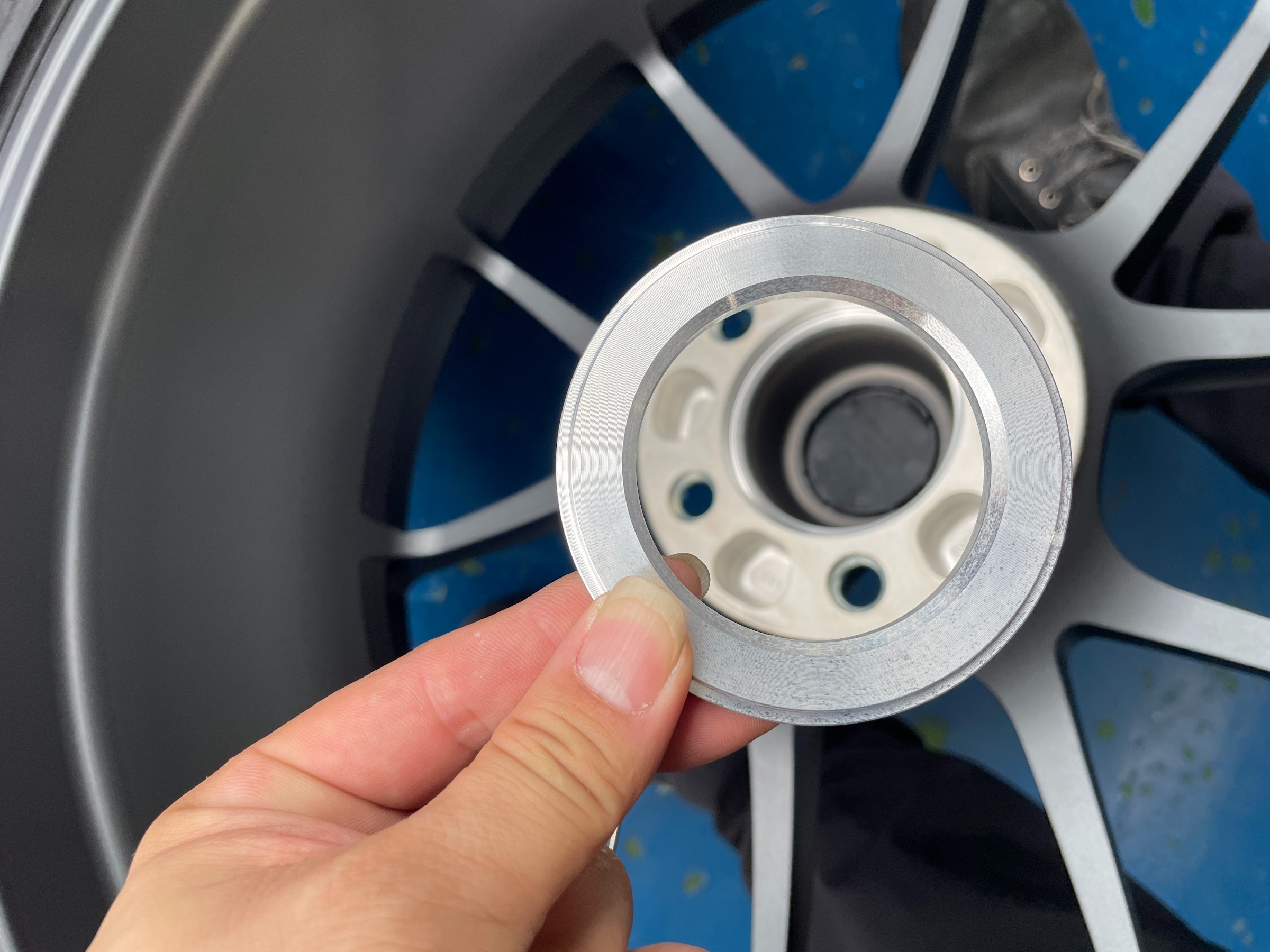 まずは純正のホイールを外してBBS RI-Aにハブリングを取り付けます!
