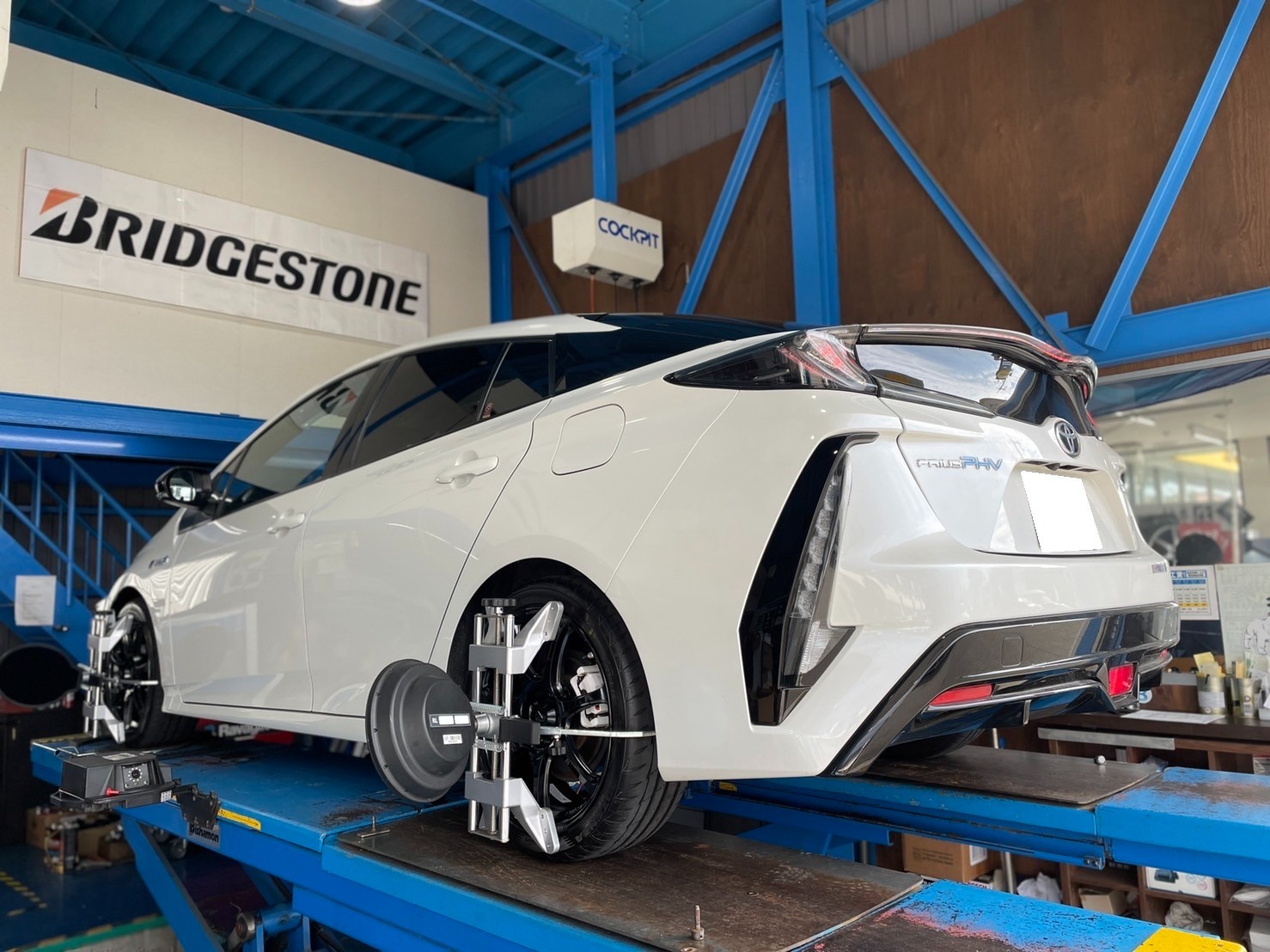 数値に大きなずれはありませんでしたが、細かな調整までできるのがアライメントテスターのメリットですね!!それではいよいよカッコよくなったプリウスの登場です!!