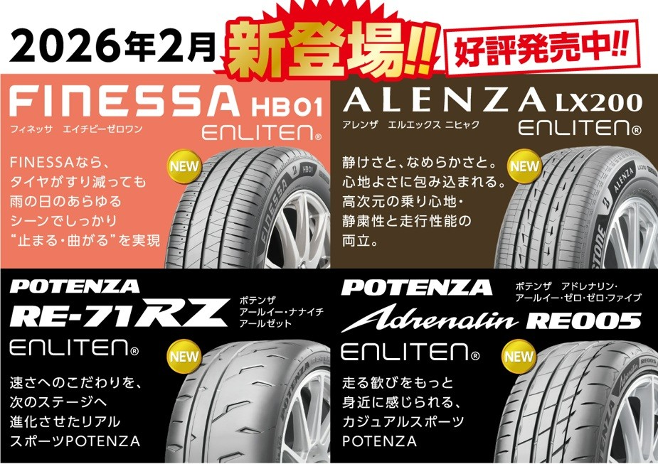 ブリヂストンタイヤ新製品が数多く登場しました!