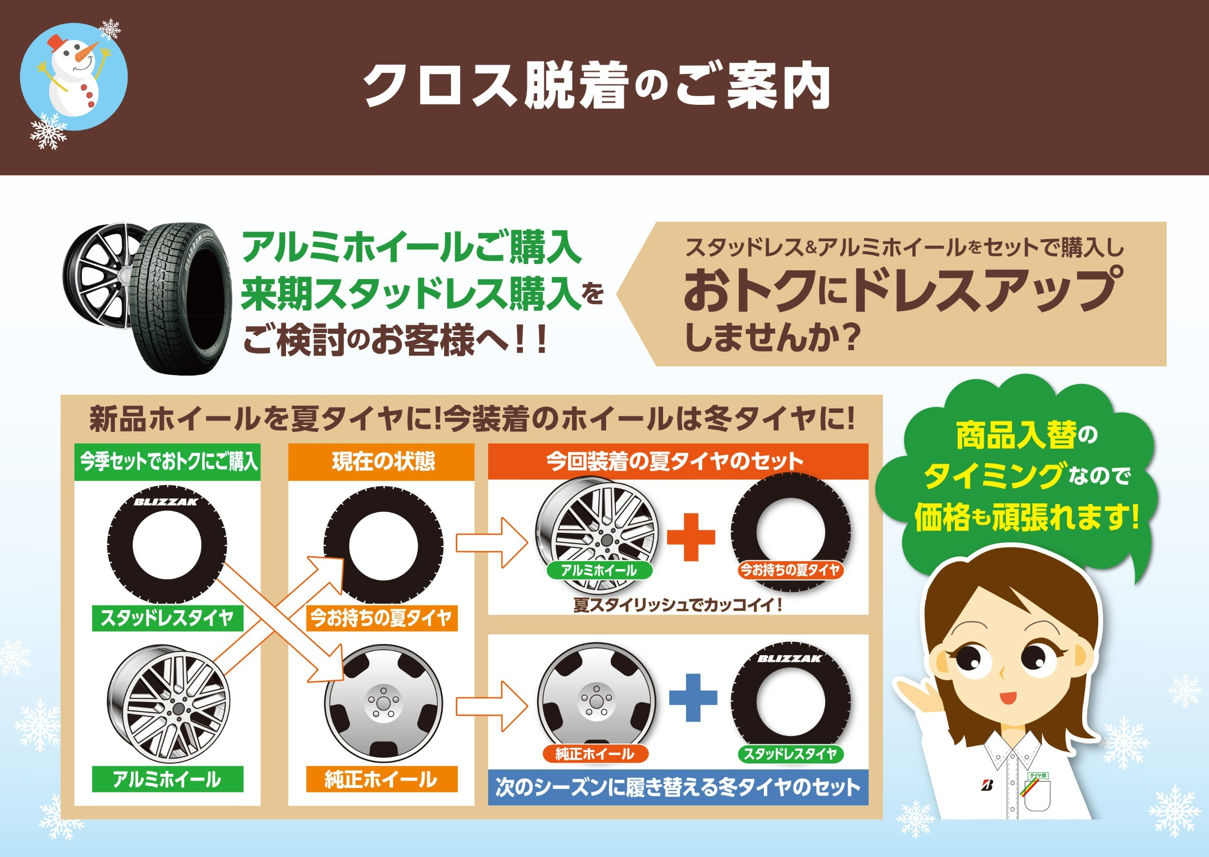タイヤ・ホイールセット・工賃・メンテナンス用品などセール限定の特別価格でご奉仕!