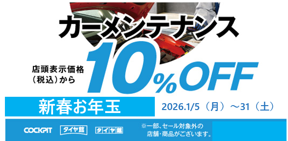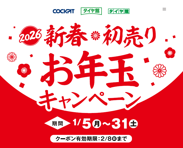 2026年1月5日~2026年1月31日 【タイヤ・メンテナンス割引クーポン配信中】新春初売りお年玉キャンペーン!