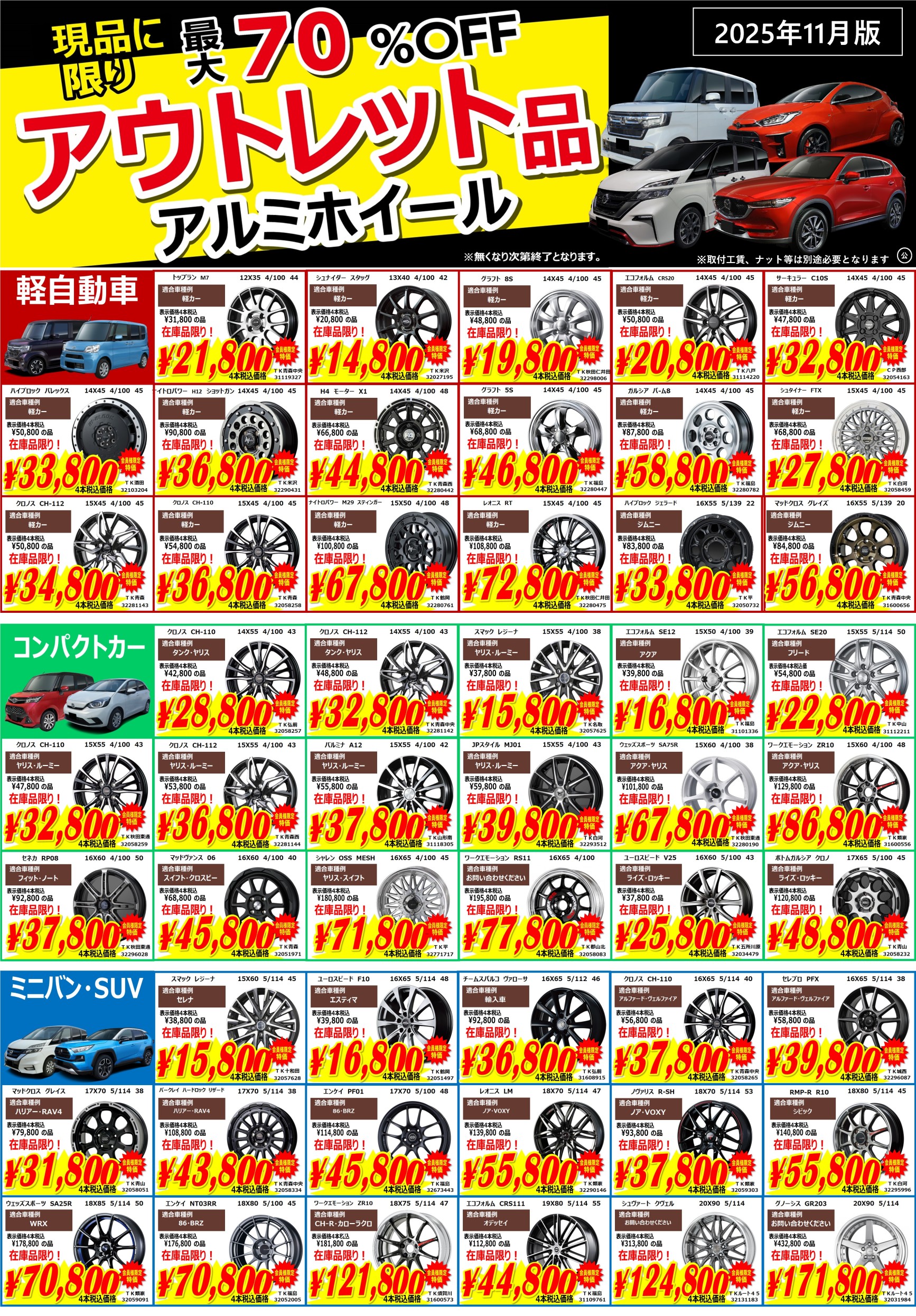 2025年11月6日~2025年12月7日 最大70%オフ!【11月最新】アウトレットアルミホイール【現品限り】