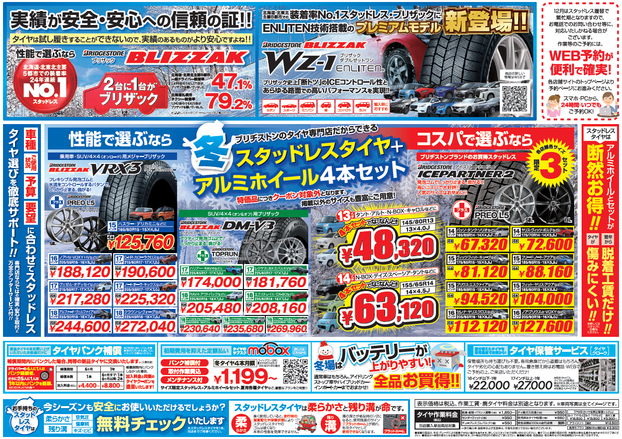 タイヤスペシャルプライスデーは、12/19(金)~12/29(月)まで。