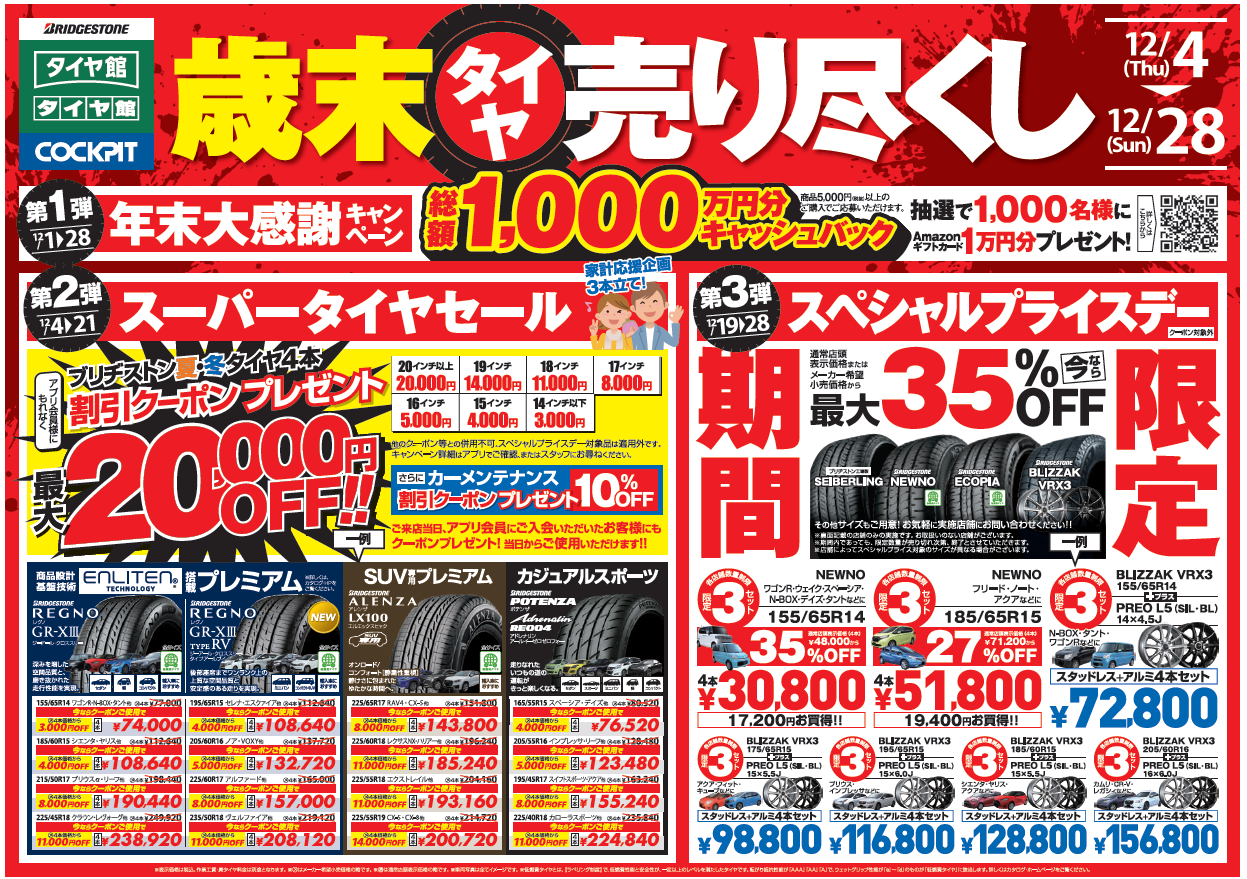 タイヤスペシャルプライスデーは、12/19(金)~12/28(日)まで。