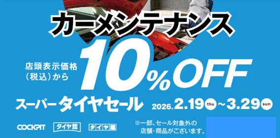 コクピット・タイヤ館では、お得なクーポンを獲得できるスーパータイヤセールを2/19(木)より開催致します。
