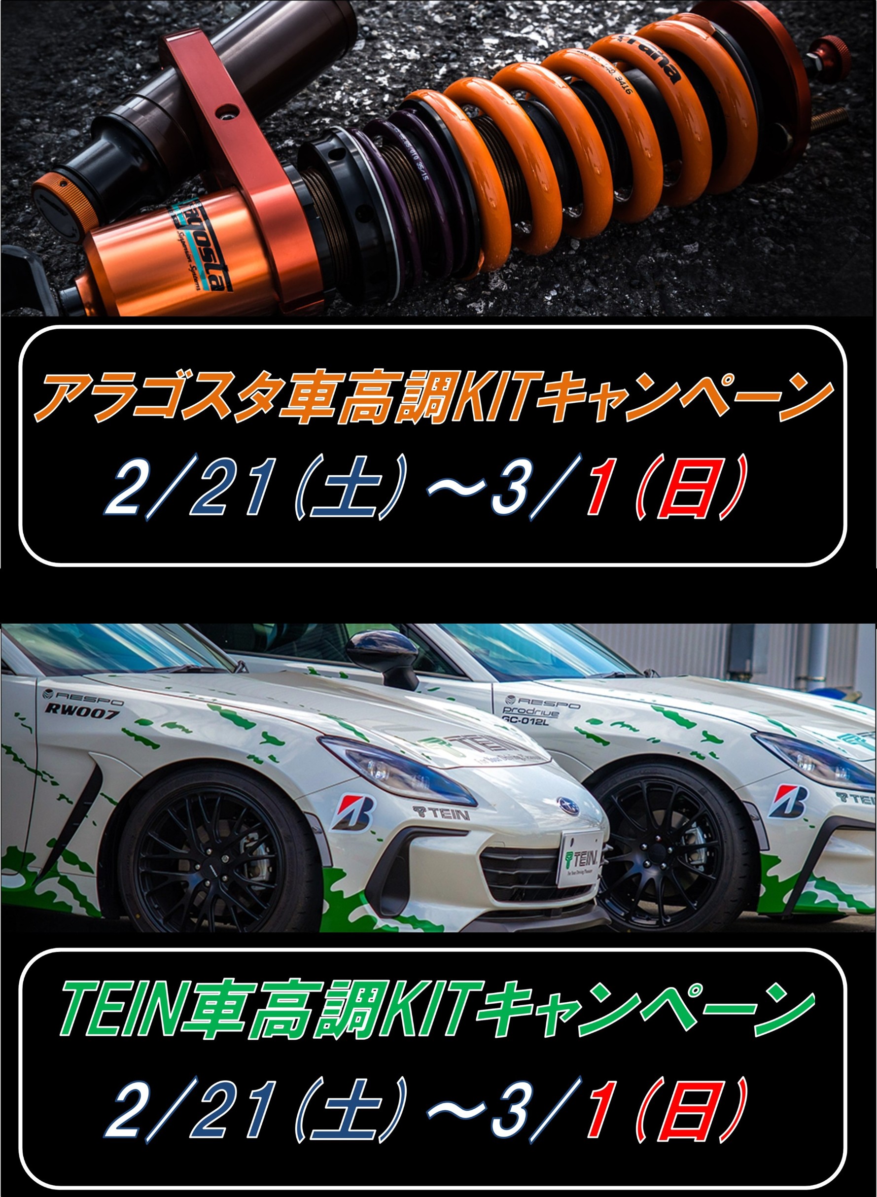 2026年2月21日~2026年3月1日 【アラゴスタ車高調・TEIN車高調】キャンペーン開催