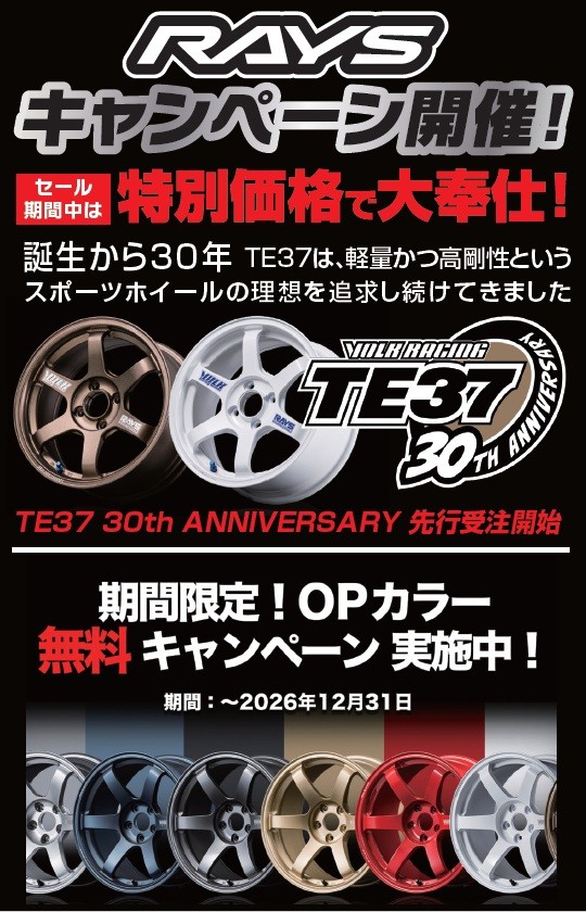 併せてみんなの憧れ!RAYS TE37thキャンペーンを実施中!